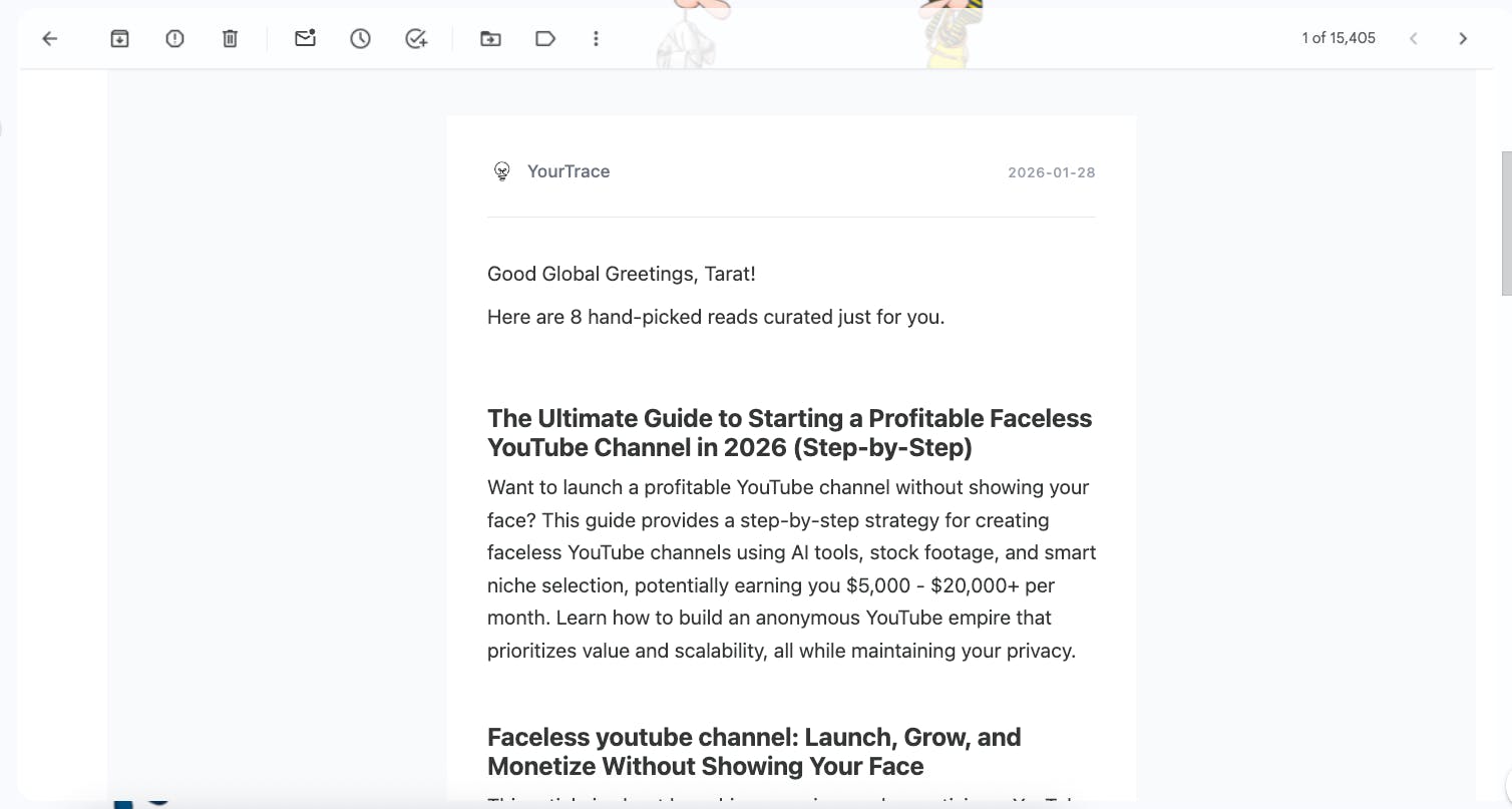 Instead of asking people to check another app, Trace now sends a daily email with the most relevant things for their interests from across the web.