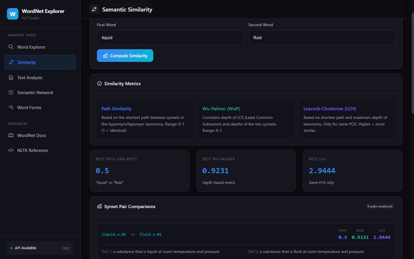 When you compute similarity between two words, do you just trust the number, or do you inspect which senses were matched? One reason I built WordNet Explorer was to make similarity explainable at the synset level.