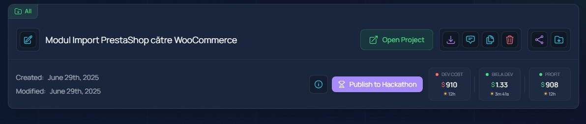 I generated a source code with Biela in 3 minutes, at a cost of $1.3, which would have otherwise cost me a lot of time and money.