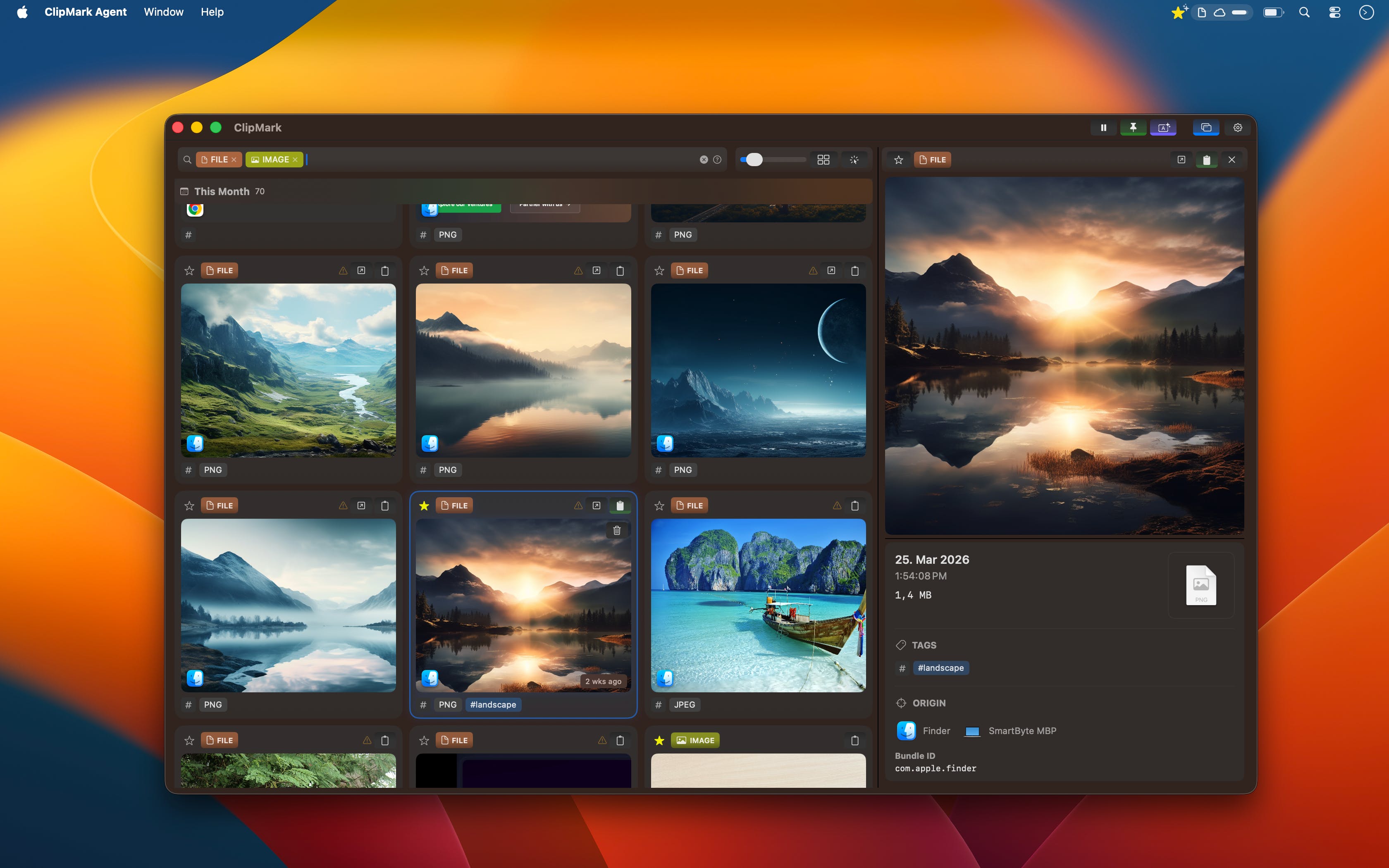 ClipMark is a clipboard manager for macOS that keeps everything you copy. Quick Recall lets you instantly browse your clipboard with a shortcut — hold, scroll, release → paste. Save links, code snippets, notes, images and more. Search instantly, tag items, and reuse anything in seconds. No more losing copied content.