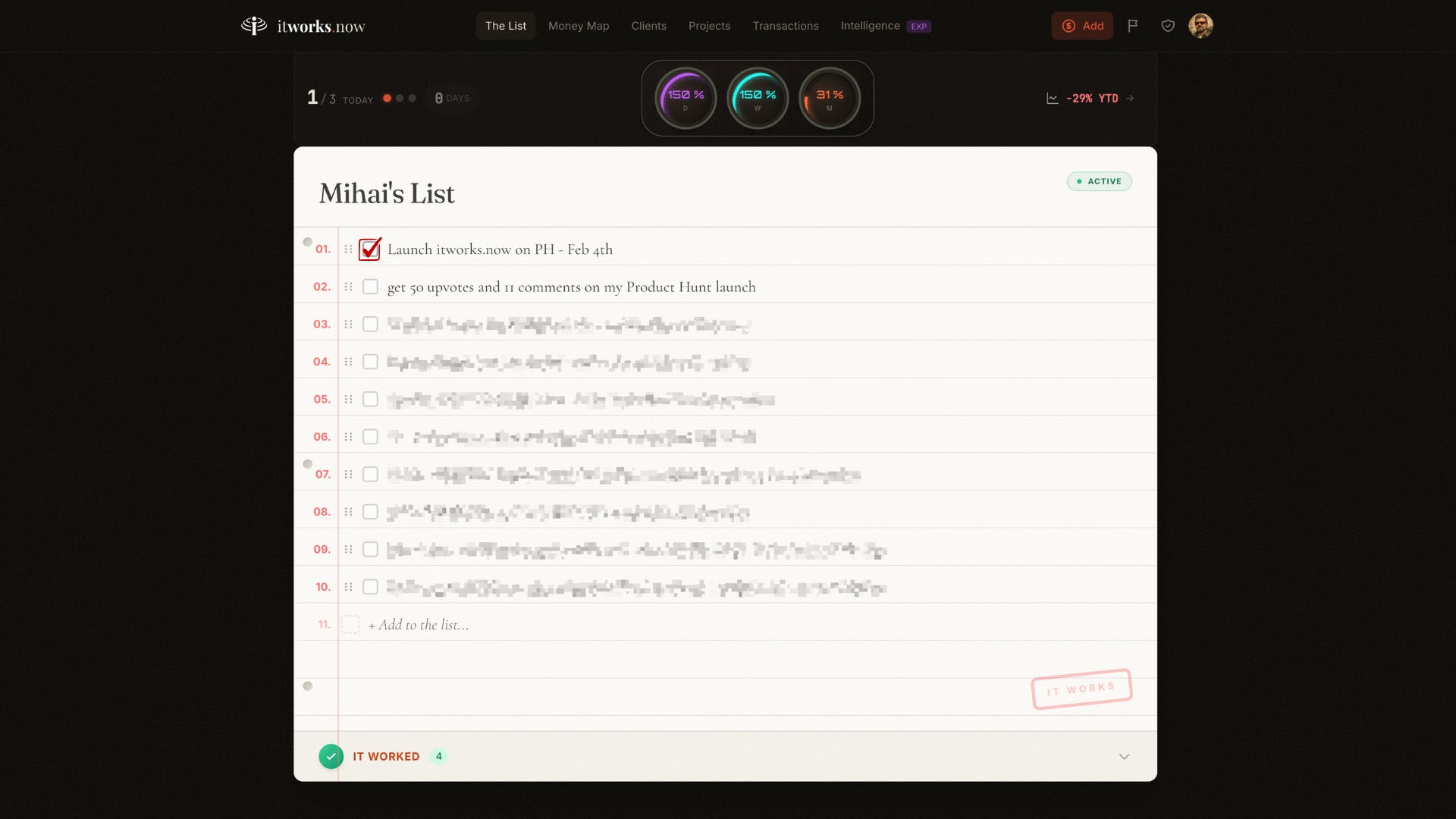 I put "Launch itworks.now on Product Hunt" on my list months ago.