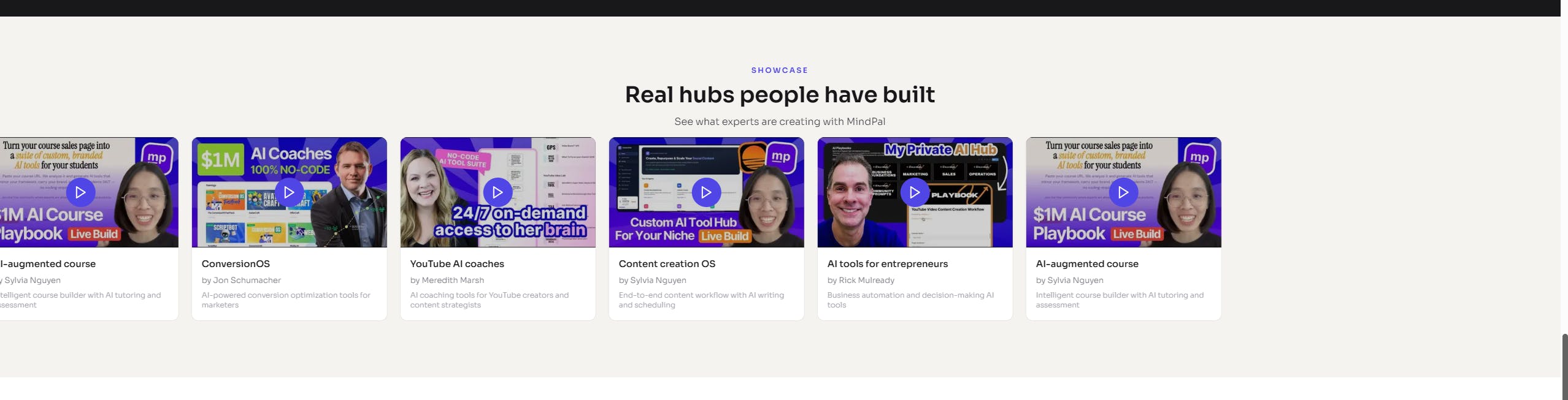 Turn your expertise into a branded, Netflix-style hub of AI tools your audience can browse, chat with, and pay for. Build the core intelligence with MindPal, generate the full hub with Base44, Lovable, Replit, or any vibe coding platform. Auth, usage tracking, chat history, personalized profiles, paywall — all included. Your audience gets 24/7 AI-guided support. You get higher retention, lower churn, and a new self-serve revenue stream.
