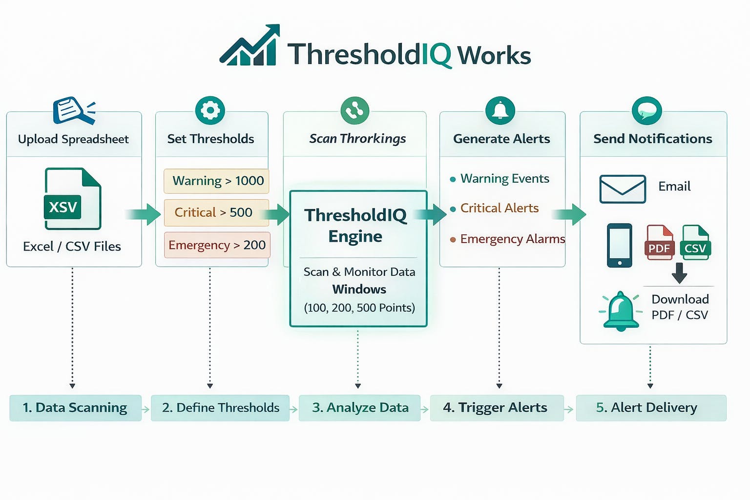 ThresholdIQ is a browser-based Excel alert dashboard that detects abnormal metric changes and sends instant notifications: Critical, Emergency, or Warning. Perfect for revenue drops, inventory issues, or overdue balances — without complicated dashboards.