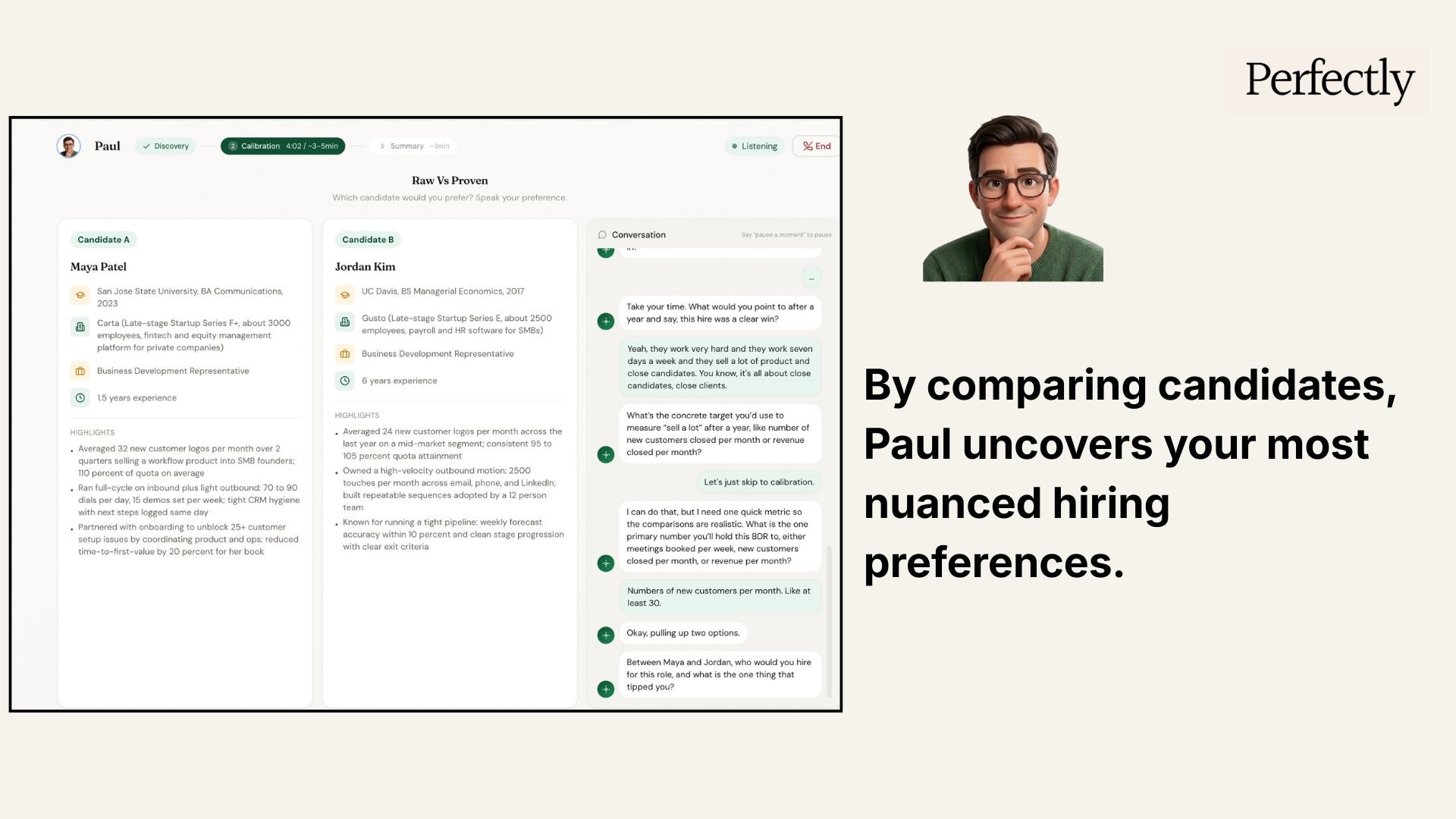 Question: at what company size does Paul perform best right now? Curious if the calibration model needs a certain volume of interview feedback before the matches get really sharp, or if even a 3-person team can get value from day one.