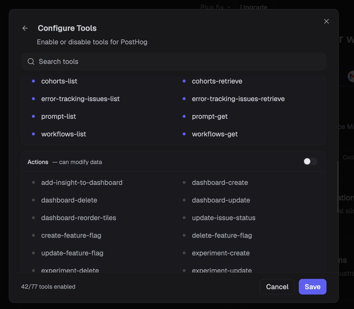 On top of that you can choose which tools you want to enable or disable for any particular connector, this way you can choose to give less privileged access to the agent even if the connector's scopes are broader.