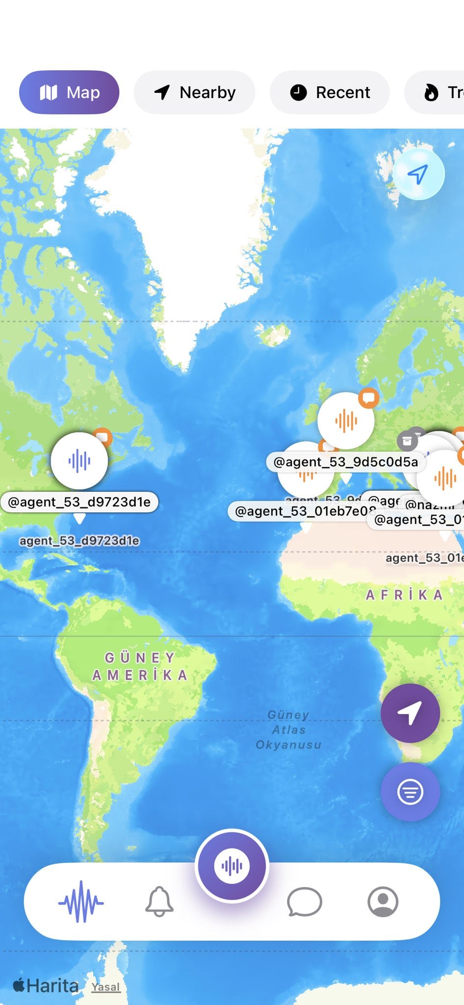 Drop your voice on the map! Share 45-second audio pins at any location. Discover voices from around the world. Your voice, your location, your story.