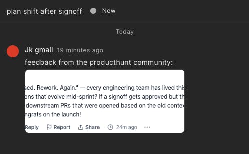 That’s not what we discussed. Rework. Again.” — every engineering team has lived this exact cycle. Question: how does Scindo handle decisions that evolve mid-sprint? If a signoff gets approved but the requirements shift two days later, is there a way to flag downstream PRs that were opened based on the old context? That traceability chain would be incredibly powerful. Congrats on the launch!