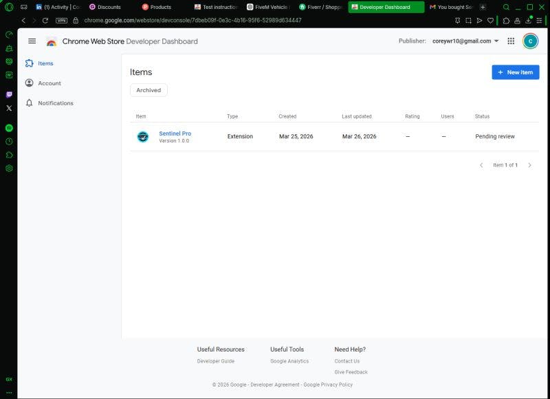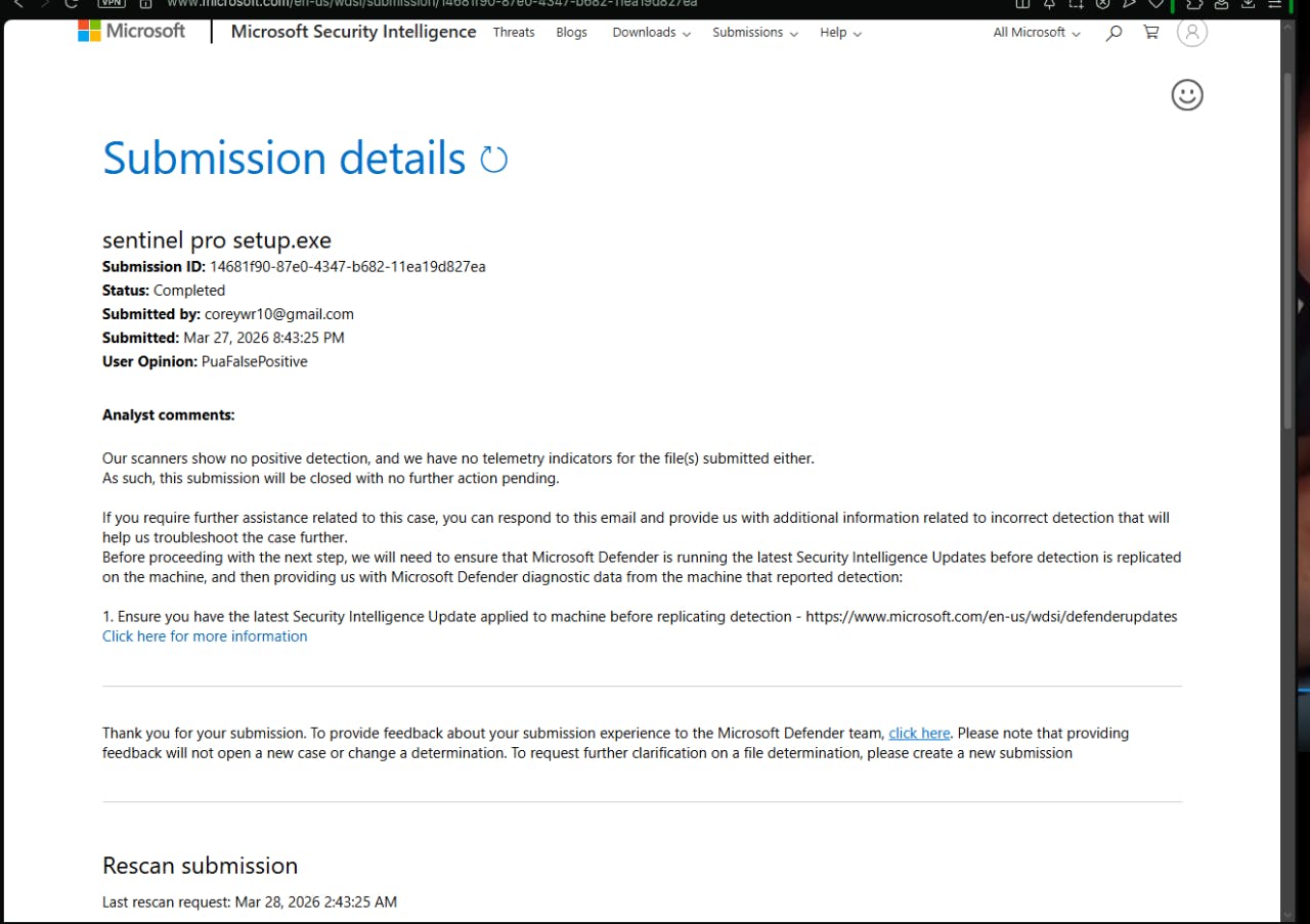 Big progress on Sentinel Pro! Currently pending review on all 3 fronts — Chrome Web Store, Microsoft Security Intelligence, and SSL.com code signing validation. Almost there!
