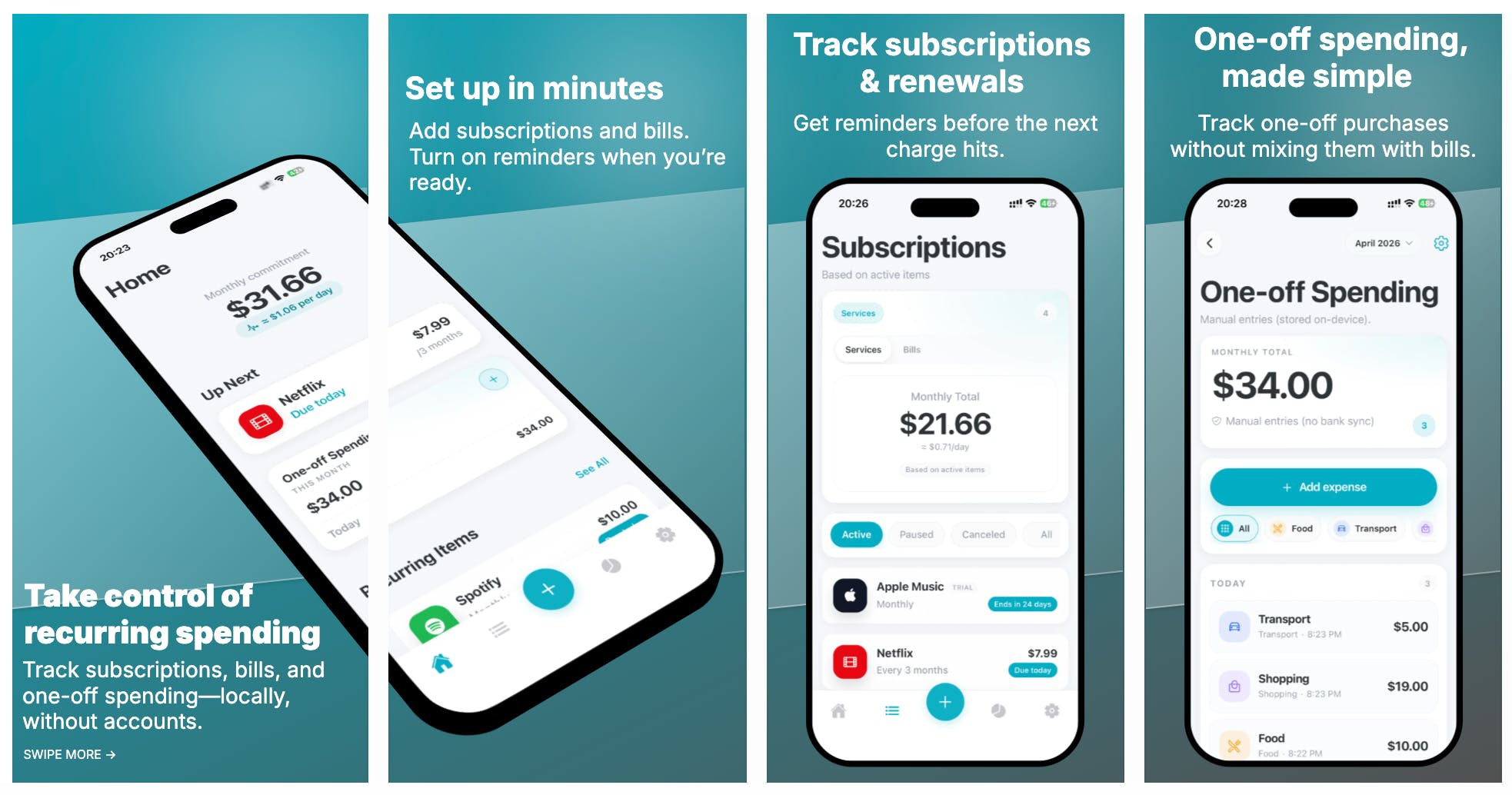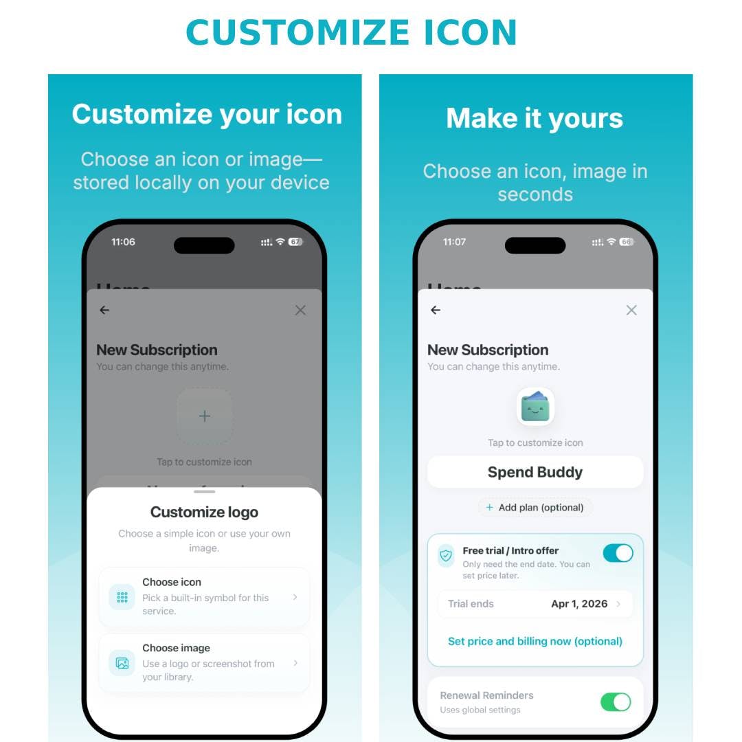 SpendBuddy helps you stay on top of subscriptions and recurring bills—without the “surprise charges.” Add services and bills in seconds, get renewal reminders, confirm each charge, and spot changes in cost over time. See your monthly commitment at a glance and track bill trends cycle-to-cycle. Local-first & privacy-first: your data stays on your device. Perfect for anyone juggling apps, SaaS, and utilities.