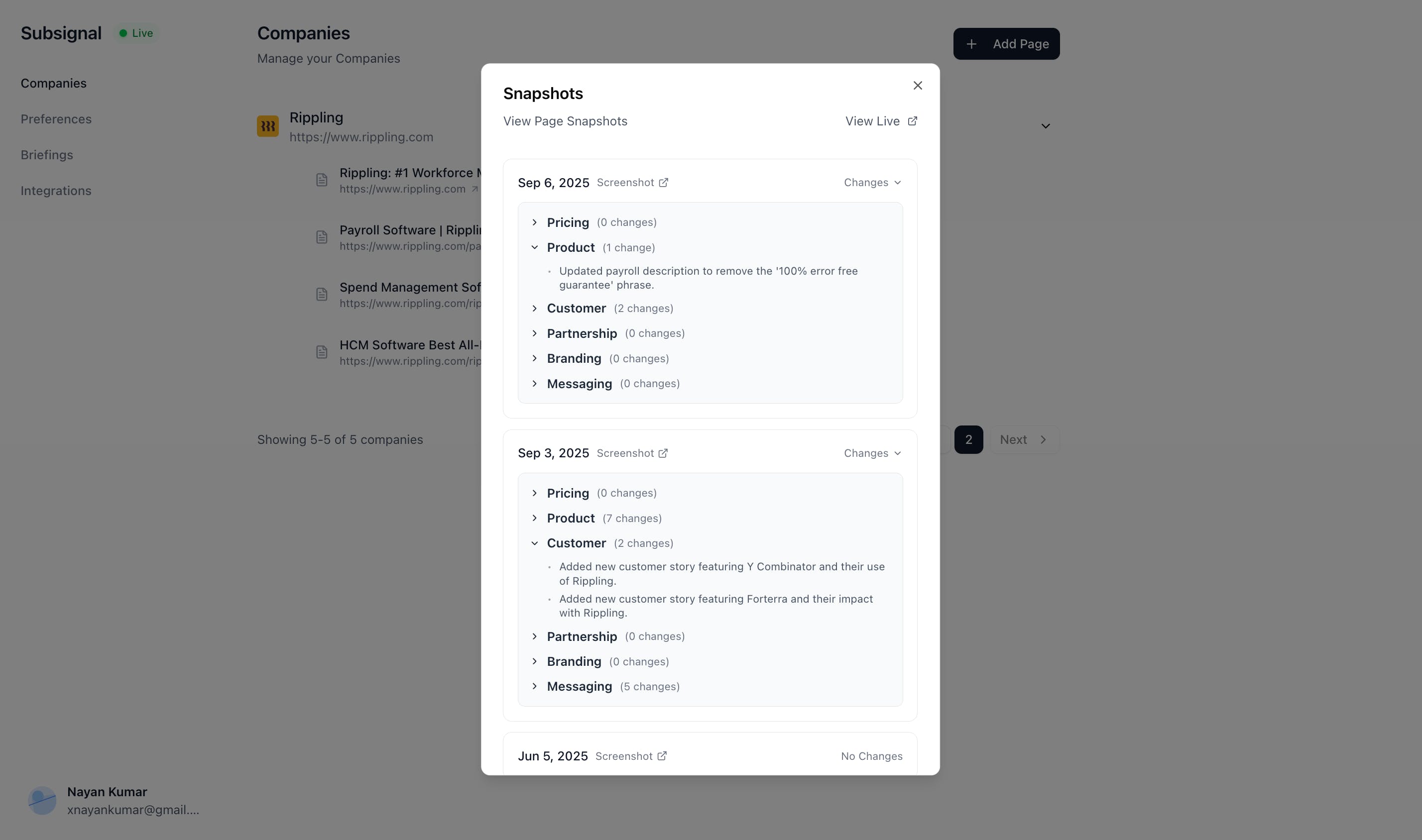 It captures subtle signals that shape the market—pricing changes, product updates, new customers, early partnerships, and much more. And helps you understand how companies and competitors evolve over time. That way your market view stays fresh instead of drifting week by week.