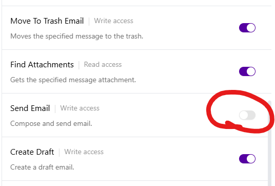 This way, the AI can never send emails until you change that permission.