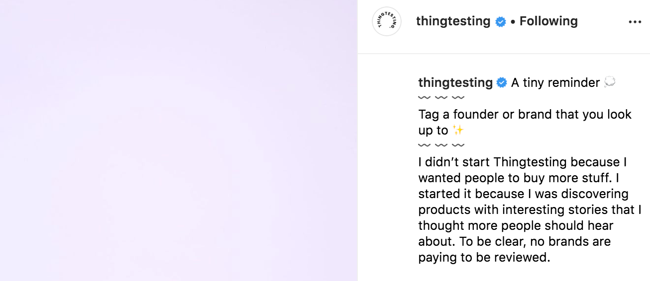 Flash forward to today. Jenny has grown Thing Testing from a side project to her full-time gig. The Instagram account now has over 25,000 followers. Jenny has also evolved her testing framework, shifting from products she was already using (like AirPods) to brands with a unique story to tell.