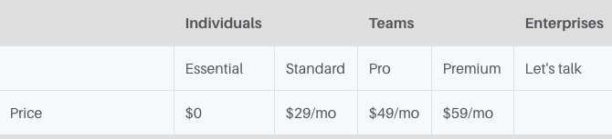 And further down the page, you see that they have pricing plans for teams of all sizes.