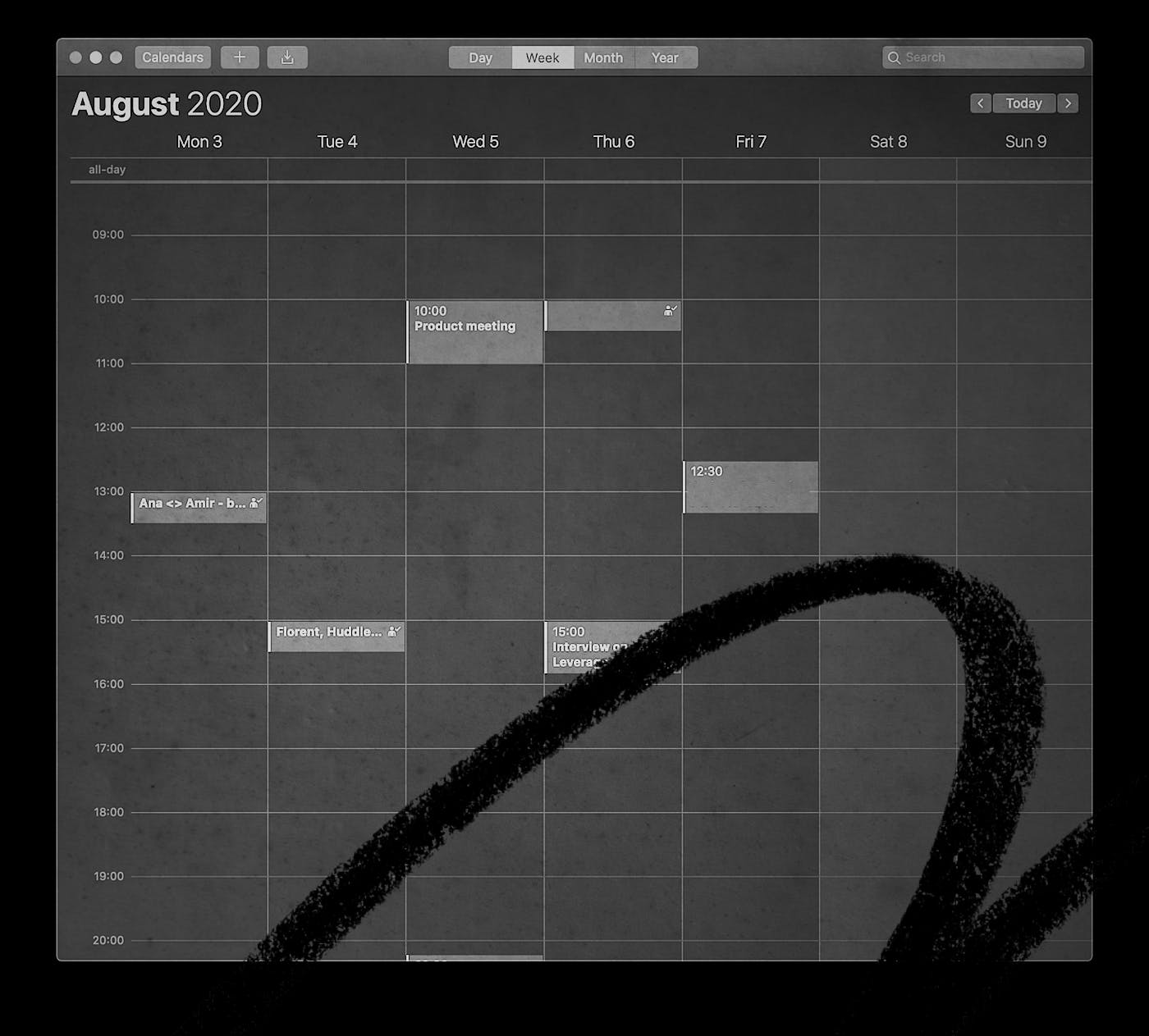 His calendar is almost completely empty. There are meetings, yes, but they’re drifting like planets in outer space. They dot the darkened landscape but with unimaginably vast distances between them.